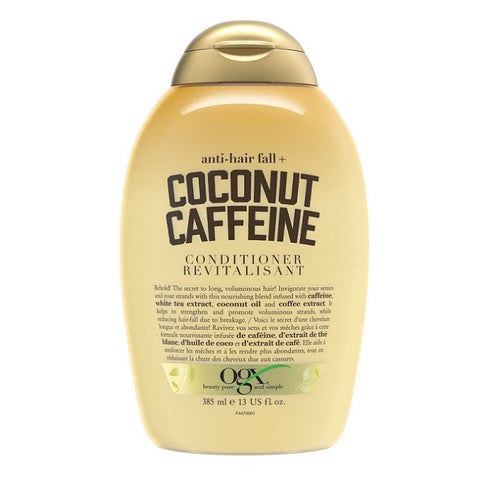 - Reinforce your hair’s natural strength with OGX Anti-Hair Fall + Coconut Caffeine Strengthening Conditioner.