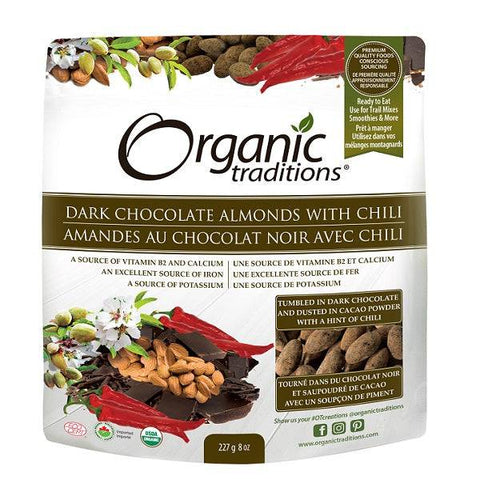 Organic Traditions Dark Chocolate Covered Almonds with Chili 227g