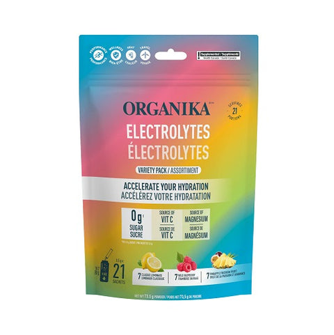 Accelerate your hydration with Organika's Electrolytes Variety Pack. Mix it up... choose between Classic Lemonade, Wild Raspberry, or Pineapple Passion Fruit. Organika's Electrolytes Variety Pack is the convenient to-go hydration you've been looking for.