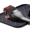 Grilling Basting Brush, 35.5cm, silicone. Layered, high-heat resistant silicone bristles that grab and hold onto barbecue sauce and marinades for mess-free transport and worry-free basting. Designed with an angled head to keep surfaces mess-free. Wide middle bristles have unique holes for additional sauce pick-up so you don't waste a drop.