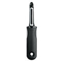 Swivel Peeler, 7"/18cm, black, stainless steel blade. Sharp, stainless steel blade peels easily and effortlessly. Handle is comfortable, even during repetitive action of peeling. Built-in potato eyer. Dishwasher safe.