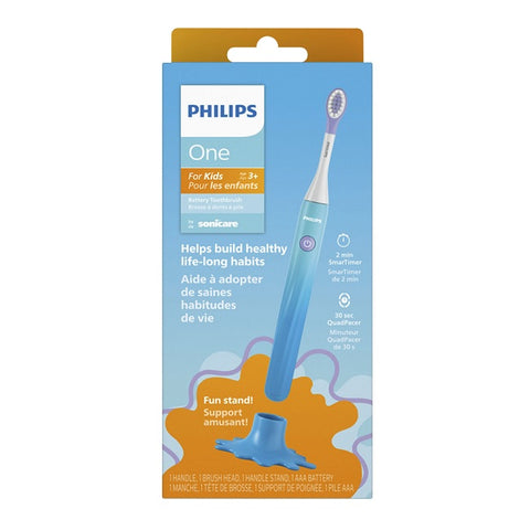 - A Splash of Fun in Their Bathroom: Let your child personalize their bathroom space with the playful and colourful blue handle of the Philips One For Kids. The included stand adds a whimsy while allowing the toothbrush to dry hygienically. It's a small detail that makes a big difference in encouraging them to take ownership of their oral hygiene routine.