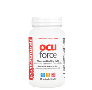 Prairie Naturals Ocu-Force is a new and revolutionary super-antioxidant supplement that contains a balance of both fat soluble and water soluble antioxidants recognized for promoting healthy eyes and vision. Based upon current scientific evidence, the therapeutic ingredients in Ocu-Force have been shown to support normal eye function, reduce damage caused by free radicals, protect against oxidation of retinal tissues, restore metabolic balance disrupted by high blood sugar, improve night vision, increase circulation to and through eyes, soothe eye strain and strengthen eye tissue.
