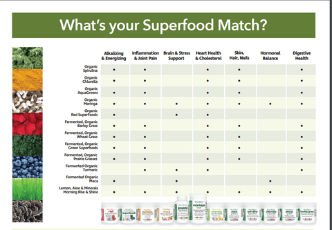 Wheatgrass, barley grass and green algae are the concentrated green foods that are rich in chlorophyll, vitamins, amino acids, and minerals. It’s especially the greens that cleanse and alkalize. Other nutrient-dense greens include organic spirulina, chlorella, moringa, kale, alfalfa and oatgrass. Green foods are anti-inflammatory, support your liver, and are vital for immune health.*