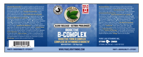 Pure Lab Vitamins Bioactive B Complex Slow Release B-Vitamin Complex Vegi-Capsules