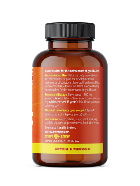 Ascorbic Acid, Magnesium Glycinate, Monk fruit, Orange Flavour (natural), Cellulose, Magnesium Stearate (veg source), Malic Acid, and Silicon Dioxide.