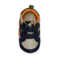 Give your little one a stylish and comfortable start with Robeez First Kicks Brooks in the Navy. These adorable baby shoes feature a classic navy, tan, and orange colour mix that's perfect for any outfit. Designed with your baby's comfort in mind, these shoes offer a soft, flexible sole that promotes healthy foot development. The double strap closure makes them easy to put on and take off, while the perforated leather upper ensures breathability. With their playful dinosaur label and APMA-approved design, these shoes are a must-have for your baby's wardrobe.