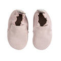 Introducing the Robeez Soft Soles Girl Shoes in Pretty Pearl pink – a delightful choice for your little one's first steps! These adorable shoes are designed to mimic barefoot walking, allowing your baby's feet to develop naturally while providing gentle protection. Crafted with soft and breathable leather, these shoes offer exceptional comfort and a luxurious feel against delicate skin. The flexible suede outsole ensures a secure grip and promotes natural movement, making every step confident. The elasticized ankle and slip-on design makes dressing your little angel a breeze, while the charming pearlescent pink colour and heart detail add a girly flair.