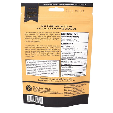 These decadent bites combine the rich, full-bodied flavour of Ross's dark chocolate with the delightful crunch of California almonds. The secret? Sweetened with stevia, making them keto-friendly and perfect for those watching their sugar intake. Each bite delivers a burst of flavour and a satisfying crunch, curbing your sweet tooth without derailing your health goals.