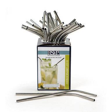 The set of forty bent drink straws are made of polished 18/8 stainless steel and are ideal for cold summer beverages, milk shakes and dinner party cocktails. These are a great "green" item! Dishwasher safe.