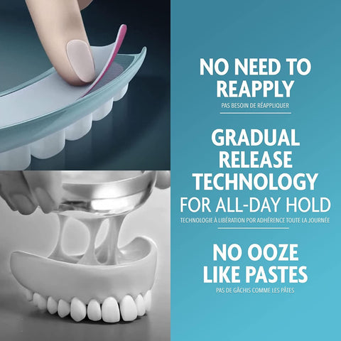 The original Sea Bond Denture Adhesive Seals for uppers are flavourless and offer a comfortable, cushiony seal that keeps your denture firmly in place all day. Since these adhesive seals are neither a paste nor a powder, there won't be any mess or ooze, and they contain no zinc!