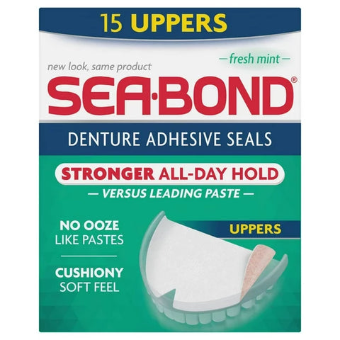 1. Sea-Bond Denture Adhesive Seals Fresh Mint Uppers 15 Count