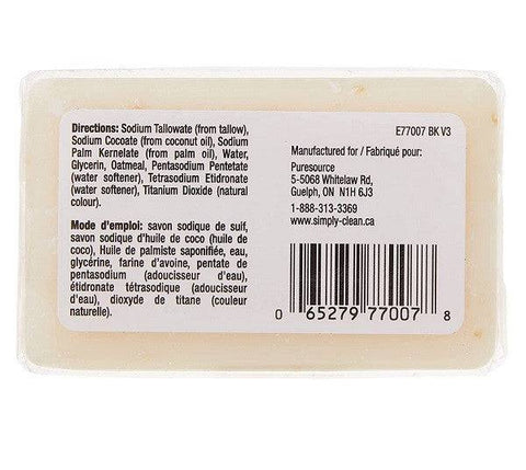 Sodium Tallowate (from tallow), Sodium Cocoate (from coconut oil), Sodium Palm Kernelate (from palm oil), Water, Glycerin, Oatmeal, Pentasodium Pentetate (water softener), Tetrasodium Etidronate (water softener), Titanium Dioxide (natural colour).