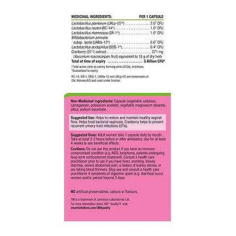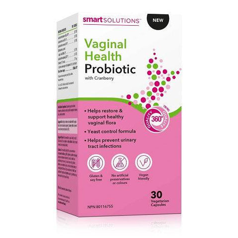 Smart Solutions Vaginal Health Probiotic is a one per day probiotic that provides yeast control, helps support & maintain healthy vaginal flora and contains cranberry to help prevent UTIs. 1 Capsule daily formula to help restore and maintain healthy vaginal flora and help treat bacterial vaginosis. The inclusion of cranberry helps to prevent recurrent urinary tract infections (UTIs) and has been used in traditional herbal medicine to treat and prevent UTIs.