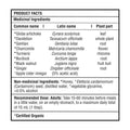Globe artichoke (Cynara scolymus, leaf), Dandelion (Taraxacum officinale, whole plant), Gentian (Gentiana lutea, root), Chamomile (Matricaria chamomilla, flower), Turmeric (Curcuma longa, rhizome), Burdock (Arctium lappa, root), Black walnut (Juglans nigra, unripe hull), Ginger (Zingiber officinale, rhizome), Apple cider vinegar (5% acetic acid)
