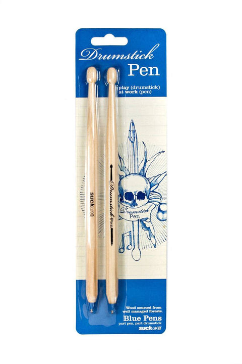 Pair of drumsticks that are also cool pens A pair of drumsticks handily combined with ballpoint pens, for persistent amateur tappers and professional drummers. Know someone who thinks they're the next Phil Collins? Or just a fidgety pen tapper? This is the perfect gift, your drumming pal can practice keeping a beat and in one swift rotation look busy at work!