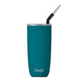 A: The S'well Tumbler has a reusable, flexible stainless steel straw.