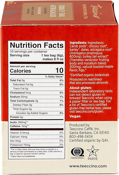 Teeccino Herbal Coffee Hazelnut 10 Tea Bags