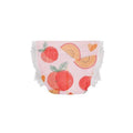 Materials: absorbent bio-core [totally chlorine-free (TCF) wood pulp from sustainably managed forests, sodium polyacrylate containing renewable materials & odor inhibitors including citrus extract & liquid chlorophyll], outer layer(plant-based PLA), inner layer (polyethylene & polypropylene), leg/waist system (polymer spadex & polypropylene), polyolefin adhesives in the seams & joints, super-cute design on backsheet (inks)