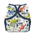Ditch the bulky covers and overflowing diaper bags! The Thirsties Duo Wrap Snap is your perfect match. Unlike some covers, it offers a trim fit that pairs seamlessly with prefolds or trim-fit diapers for a snug, leakproof experience. Plus, the adjustable rise means you only need two sizes for most babies, saving you money and precious closet space. Make diaper changes roarsome with the Thirsties Duo Wrap Snap (Dino-rawr)! This waterproof cover boasts an adjustable rise, perfectly adapting to your growing paleontologist from birth to potty training (6-18 lbs). Gentle snap closures and soft leg gussets ensure a comfortable, leakproof fit.