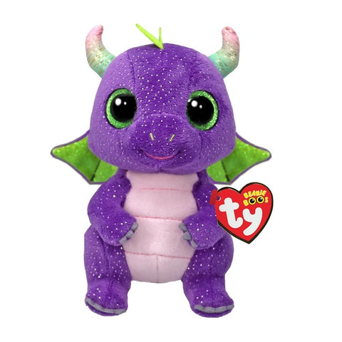 Looking for a prehistoric pal? Meet DAPHNE, the adorable purple dinosaur from Ty Beanie Boos! With sparkly eyes and a friendly smile, this cuddly dino is sure to be a hit with kids and adults alike. DAPHNE is made with Ty's signature soft Ty Silk fabric, making her perfect for snuggling or playing. She also comes with the official Ty Heart tag, making her a great collectible for dinosaur enthusiasts.