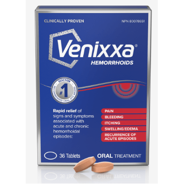 This product may not be suitable for you. Always read and follow the label and package insert carefully. Do not use Venixxa if you are pregnant or breastfeeding. If symptoms persist or worsen, or if acute hemorrhoidal episode persists after 7 days, consult a health care practitioner. If you are taking prescription medication, consult a healthcare practitioner prior to use. If hemorrhoids are accompanied by rectal bleeding (bloody stools sometimes look like black tar), or if you experience change in bowel habit, consult a healthcare practitioner