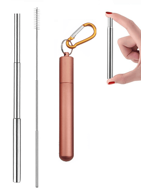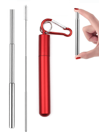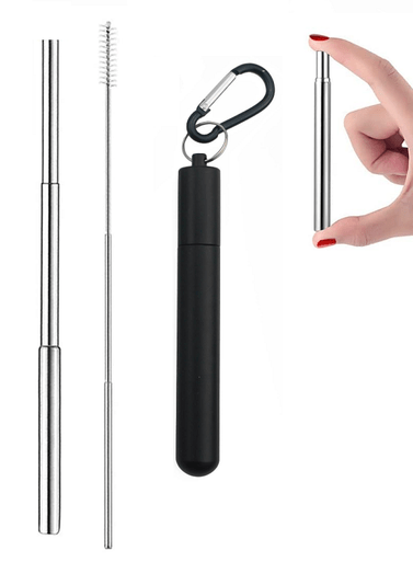 This kit comes with a stainless steel extendable straw and a brush to clean it. It also comes in a handy case with a clip to keep with you wherever you go!