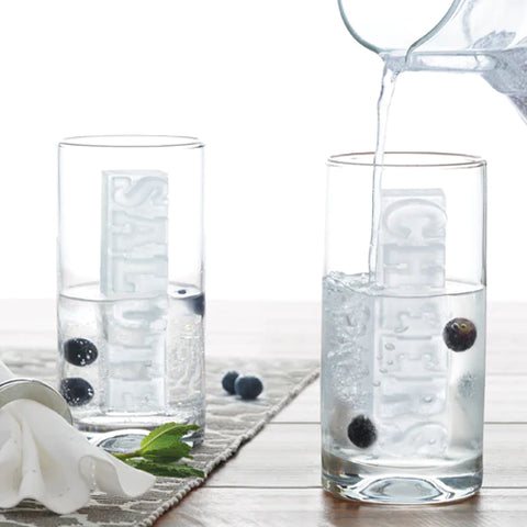 - Includes: 1 Silicone tray with 4 large word ice molds—2 Cheers and 2 Salute