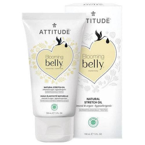 The ATTITUDE Blooming Belly Stretch Mark Oil is a body care product made for pregnant and new mothers. This oil supports the skin's feel and look as the belly, breasts, and thighs expand during pregnancy.