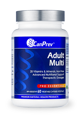 Our health would be compromised without the necessary vitamins and minerals.* They keep our cells strong and our organs functioning properly, help fight infection, regulate metabolism, help form bone and tissue and convert fat and carbohydrates into energy.* Taking antibiotic, cardiac, diabetic, diuretic and gastrointestinal medications can deplete our bodies of important vitamins and minerals.* We need to make sure we're replacing them with a high potency, professional grade supplement like CanPrev's Adult Multi.*