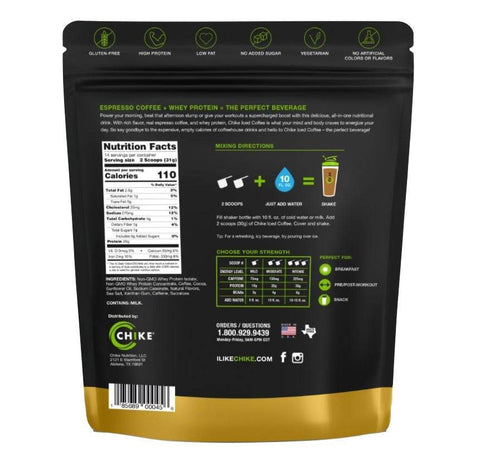 The Protein Iced Coffee supplies of 2 shots of real espresso coffee and 20g of non-GMO whey protein to empower your potential. Chike Nutrition exists to make the healthy decision the easy decision; each serving has only 1 gram of sugar without compromising on the delectable taste you expect from a coffeehouse favourite.