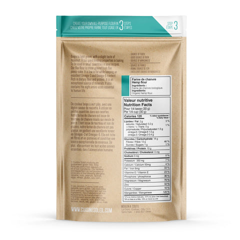 Supercharge your diet with the goodness of hemp! Cuisine Soleil Organic Hemp Flour, packed with complete protein, essential fatty acids, and a mild, nutty flavour, is the perfect addition to your healthy lifestyle.