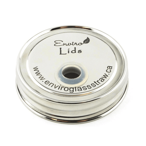 Enviro lids are a one piece stainless steel lid that turns your regular size mason jars into a travel mug with a glass straw. This is a great way to enjoy a drink or smoothie on the run or to use as a Sippy cup. So many options, one Enviro Lid.