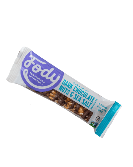 Fody's Low FODMAP Dark Chocolate Nuts & Sea Salt Bars are loaded with crunchy nuts, scrumptious dark chocolate, and just the right amount of sea salt.*