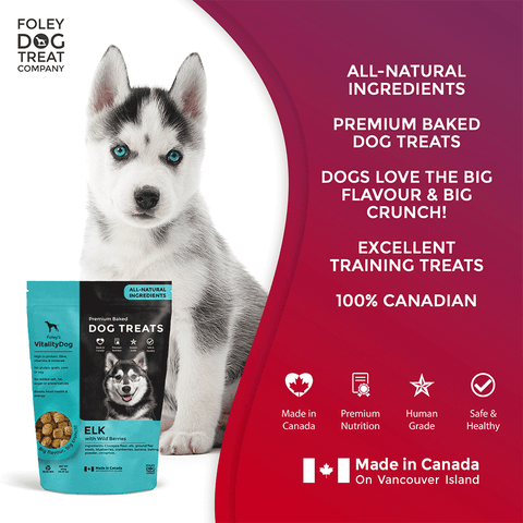 Foley's Vitality Dog Treats Elk with Wild Berries 400g is a delicious and nutritious treat for your furry friend! These grain-free and gluten-free treats are packed with protein, fibre, vitamins, and minerals to support your dog's overall health and well-being. The main ingredients are elk, wild berries, and sweet potatoes, which provide a natural source of energy and antioxidants. These treats are also low in fat and calories, making them a healthy option for dogs of all ages and sizes.