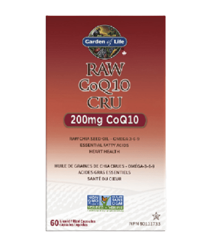 RAW CoQ10 delivers 200mg of CoQ10 in a base of raw, cold-pressed chia seed oil in just one capsule daily. This unique lipid delivery system is free of artificial ingredients. Garden of Life RAW CoQ10 is a powerful formula that delivers 200mg of CoQ10 and cold-pressed chia seed oil omega 3-6-9 matrix per serving. CoQ10 is a fat-soluble, antioxidant and electron-transporting coenzyme that is well known for its role in the respiratory chain, the production of cellular ATP, and as an effective scavenger of oxygen free radicals. RAW means no high heat, synthetic binders, fillers, artificial flavors, sweeteners, colours or additives commonly used in tablets. RAW CoQ10 is blended in a base of organically grown fruits and vegetables together with probiotics.