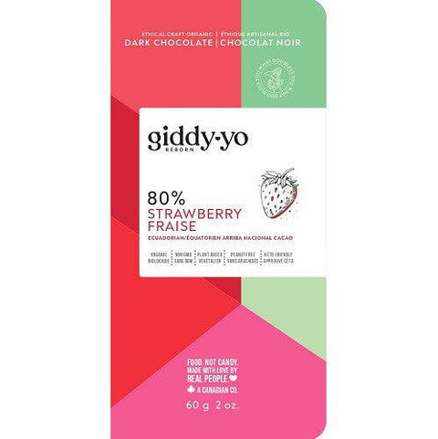 Giddy Yo Strawberry 80% Dark Chocolate Bar Certified Organic 62g