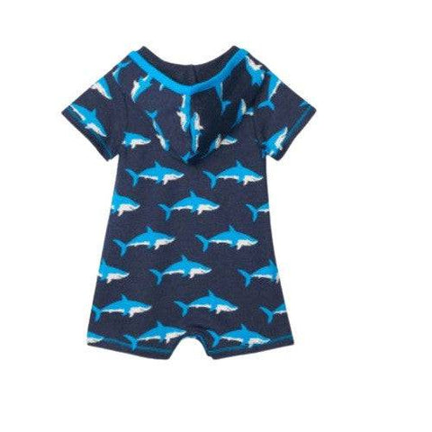 Hatley Boy's Swimming Sharks Baby Hooded Romper (Discontinued)