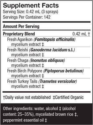 This refreshing spray combines five powerful polypore mushroom species, which contribute their unique properties to create a special blend that helps support the immune systems of travelers on the go.*