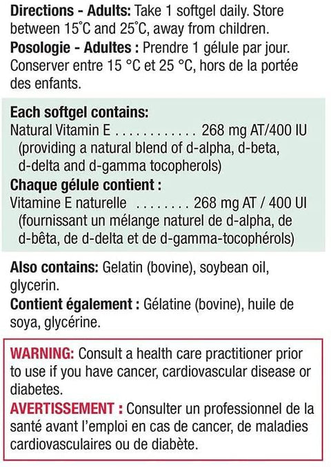 Natural Vitamin E 268 mg AT/400 IU (providing d-alpha tocopherol activity with a natural complex of Nature’s Best™ d-alpha, d-beta, d-delta and d-gamma tocopherols)