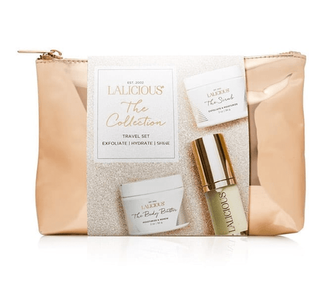 Want flawless skin on the go? Grab this plush velour cosmetic bag filled with your favorite body essentials in TSA-approved travel sizes. Nourish skin everywhere you go with an indulgent blend of peach nectar, coconut milk, and creamy musks.*