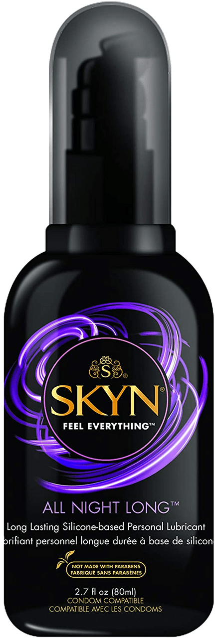 This long-lasting lubricant is made with natural ingredients to supplement the body's own lubrication and increase comfort during sexual activity. SKYN All Night Long is pH balanced and latex friendly, making it ideal for use with condoms.*
