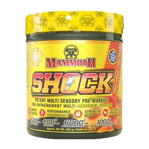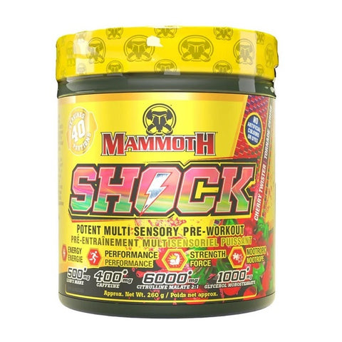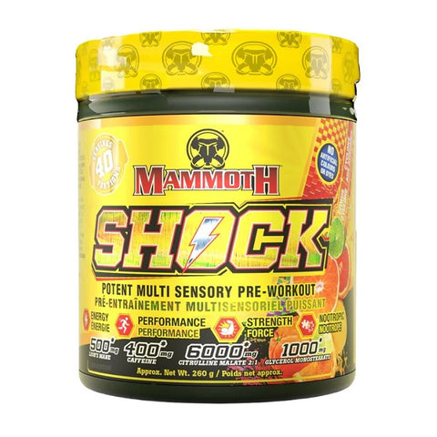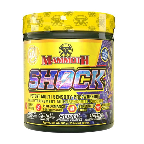 Mammoth Shock 260g (40 Serve) is a dye-free, artificial, colour-free pre-workout powerhouse designed to ignite workouts. Experience unreal muscle pumps, razor-sharp focus, and explosive power. Clinically dosed ingredients deliver next-level results, pushing your performance and recovery to the extreme. Mammoth Shock is crafted for athletes seeking a clean, potent formula to enhance strength, endurance, and mental clarity. Elevate your training and unleash your full potential with this cutting-edge pre-workout.