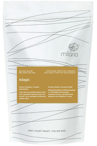 Milano Coffee Organic Whole Bean Adagio Medium Roast 340g