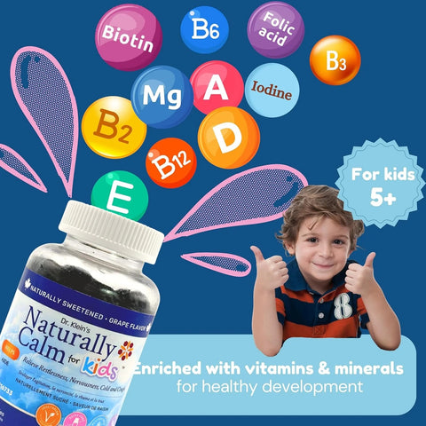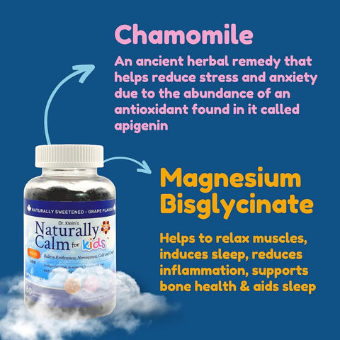 Dr. Klein's Naturally Calm for Kids Gummies are designed to help children and adolescents relax, support digestive health, and strengthen the immune system. These gummies feature a blend of natural ingredients, including chamomile and linden flower extracts, along with essential vitamins and minerals