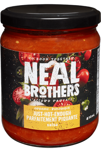 Neal Brothers Salsa - Just-Hot-Enough - medium 410 ml contains just the right amount of jalapenos to make it medium hot and taste delicious.