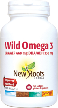 New Roots Herbal’s WildOmega 3 EPA 660 mg DHA 330 mg is the ideal supplement to reap the benefits of the omega 3 fatty acids found in the many species of cold-water fish that would be difficult to reach from consumption alone.