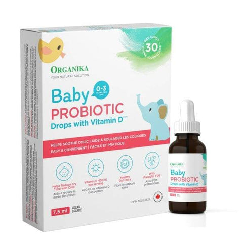 Organika Baby Probiotic Drops with Vitamin D 7.5 ml is a clinically-proven blend of probiotic strains and vitamin D. These drops help soothe colic. Probiotics add good bacteria to your baby's gut to fight harmful bacteria and help maintain healthy digestion system.