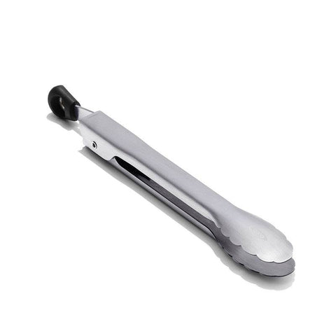 Mini Locking Tongs, 22cm L, stainless steel. Ideal to pick up food from jars, toaster ovens and for serving deli meats, cheese and fruits. Scalloped edges prevent foods from slipping. Sturdy, stainless steel handles.