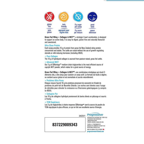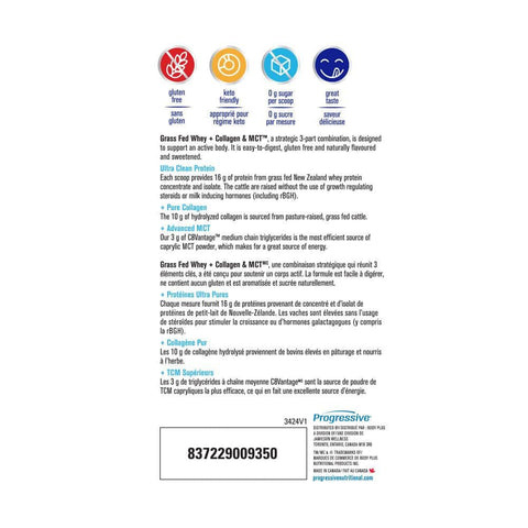 Progressive Grass Fed Whey + Collagen & MCT Protein Powder
